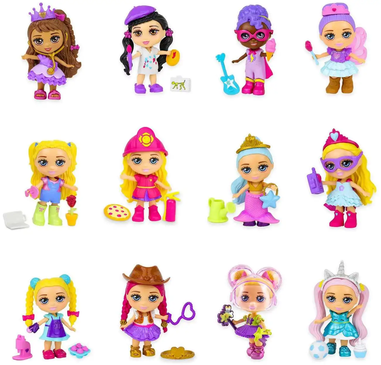 - Collect 3.5" mystery dolls featuring unique mashup themes, each with 8 accessories like fashions, shoes, and stickers.