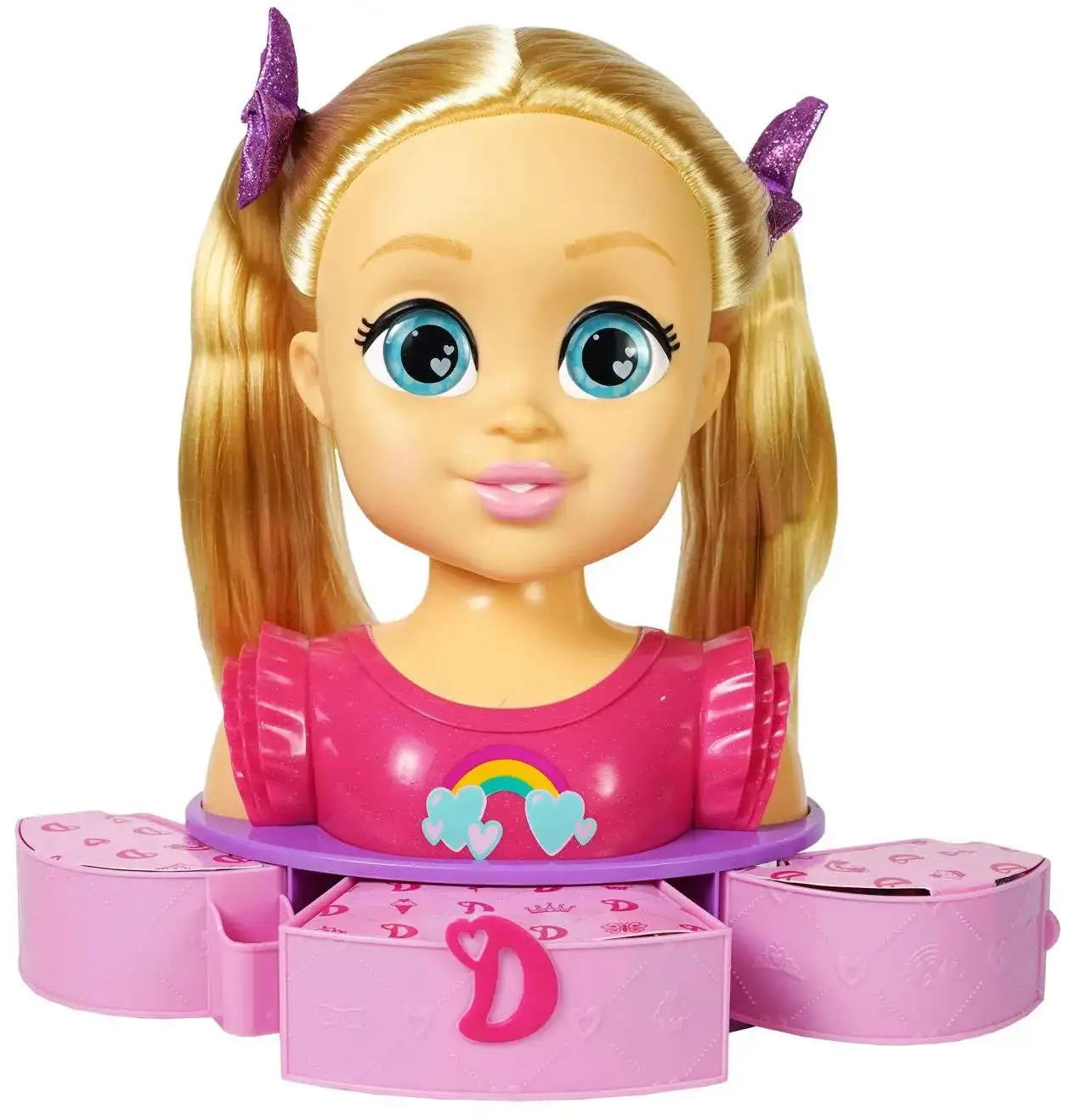 Style Dianas hair and apply makeup with this styling head. All her styling accessories can be stored in her hidden drawer.