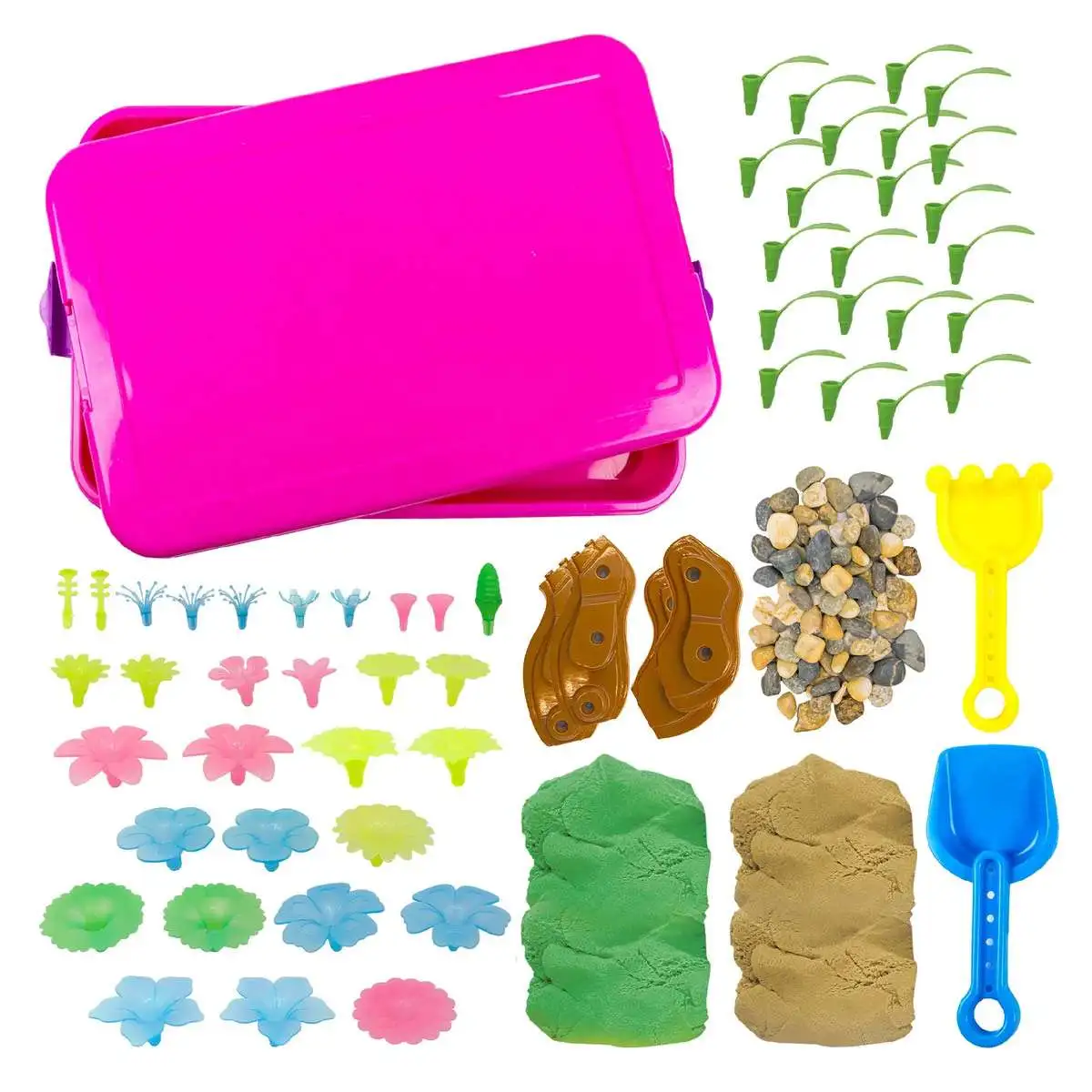 This ready-to-use bin comes with all the supplies for an instant sensory adventure, including play dirt, pebbles, moldable sand, rake, shovel, and more! Without requiring any materials from home, its a quick, fun way to foster imaginative play, sensory development, and fine motor skills.