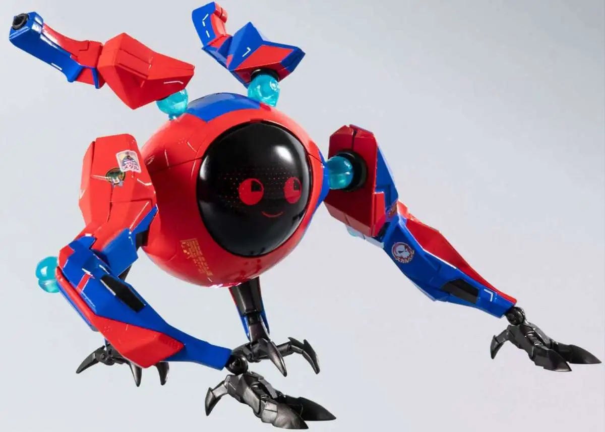 Peni Parker is portrayed as a non-movable statue in her charming pose. SP//dr is fully articulated and comes with interchangeable head parts for different expressions. Its arms and legs can be recombined for creating various scenes from the movie. It is also equipped with an LED light-up function!