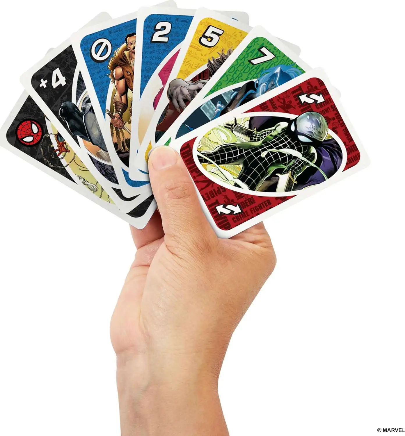 - UNO game players will love feature graphics inspired by characters from the Marvel Comic Book Series The Amazing Spider-Man.