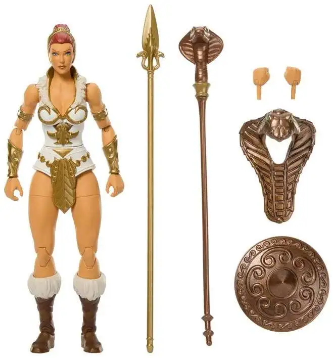 - MOTU Masterverse action figure of Teela designed at 7-inch scale with 30 points of articulation and a high level of detail; a New Eternia interpretation of the Masters of the Universe warrior goddess.