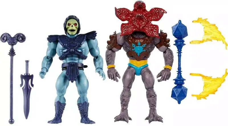 - Experience the ultimate collision of worlds with Skeletor from Masters of the Universe facing off against the Demogorgon from Stranger Things in this exclusive 2-pack action figure set.