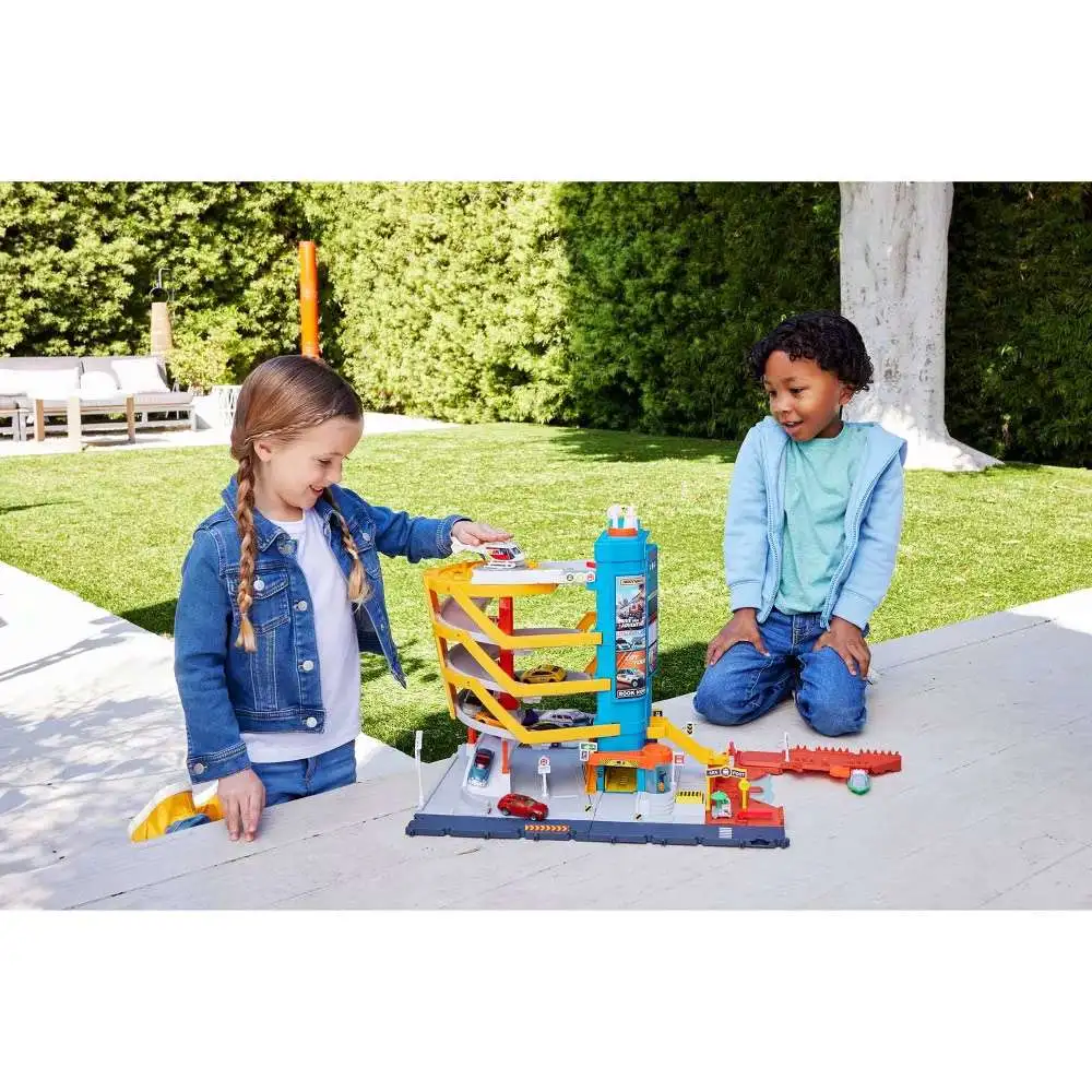 - The 5-level parking garage includes a kid-powered lift and gates for dynamic storytelling. It can also be used for storage, holding up to 12 1:64 scale vehicles. (One 1:64 scale car, boat and helicopter are included. Additional vehicles sold separately.)
