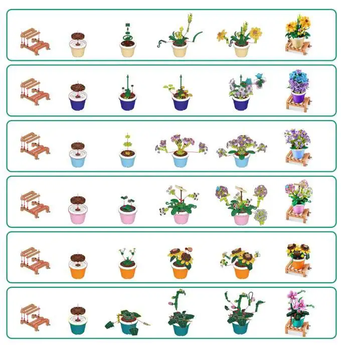 - Each set offers high-quality, rich brick counts for an immersive building experience, including plant stands, pots, and vibrant floral models.