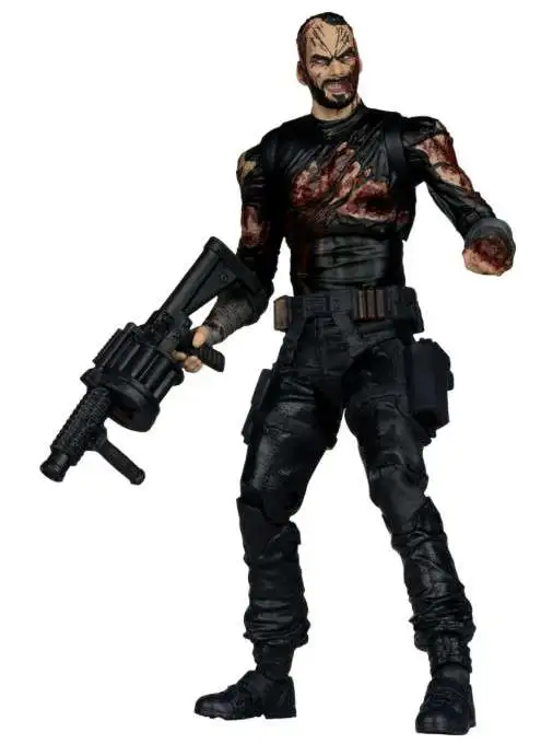 Includes TONS of accessories: 4 alternate face portraits, 2 extra ands, removable vest, alternate damaged arms, severed arm, knife, 8 weapons, a collectible card and display base
