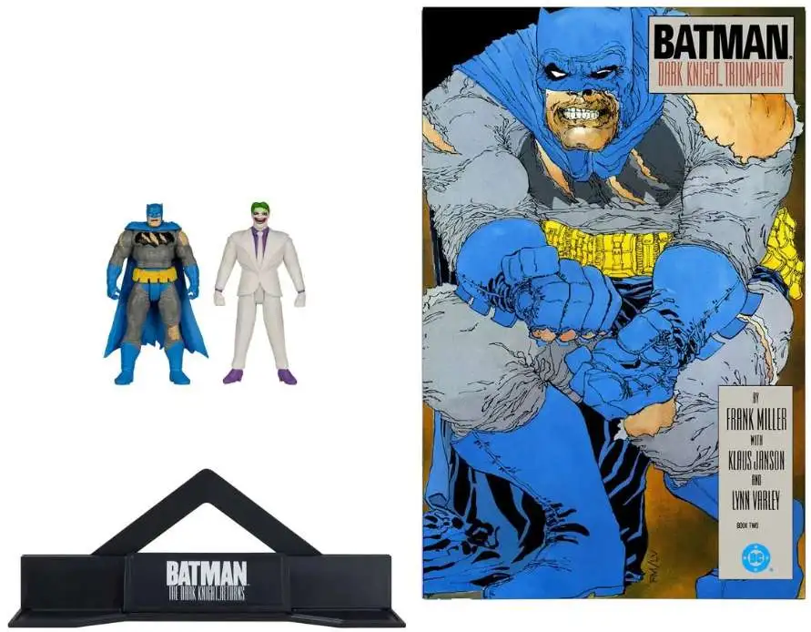 Once a small-time crook, The Joker fell into a vat of chemicals that turned his skin white, his hair green, and his lips red,like a crazed clown. His crimes always involve pranks and jokes ending with twisted punchlines that are only funny to The Joker. He may look like he's clowning around, but this guy is bad news for Batman and Gotham City! Now, upon hearing that Batman has resurfaced after 10 years of retirement, The Joker awakes from a years-long stupor in Arkham Asylum, conscious and ready to take on the Dark Knight once again!