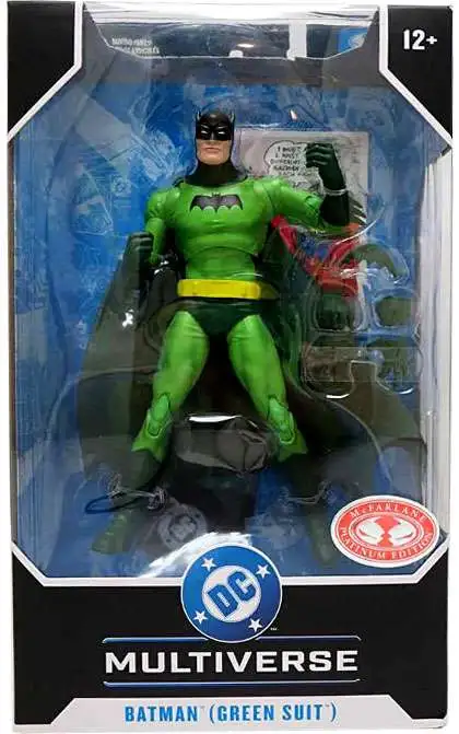 - Highly detailed 7-inch figure depicting Batman in his iconic Green Suit, including the exclusive Red Platinum Chase edition.