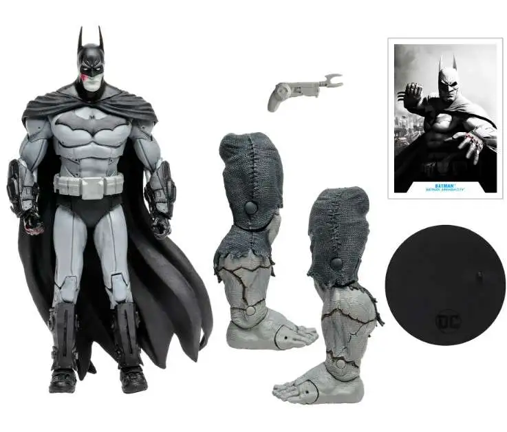 Batman is featured in his Monochromatic theme outfit based on the Video Game Batman: Arkham City
