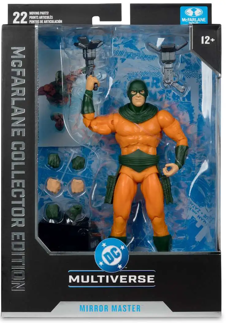 - This highly detailed 7" Mirror Master action figure captures the iconic DC villain's reflective abilities, featuring ultra-articulation with up to 22 moving parts for dynamic poses. Equipped with four extra hands, two mirror guns, and a display base, it offers versatile play and display options. Inspired by DC Comics, it includes a collectible art card with character art and biography. Perfect for collectors and fans of The Flash, this figure embodies Mirror Master's reflective powers, theme-based weapons, and villainous persona, making it a striking addition to any DC Multiverse collection.