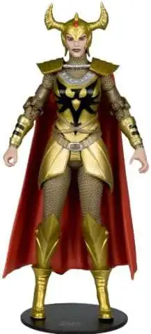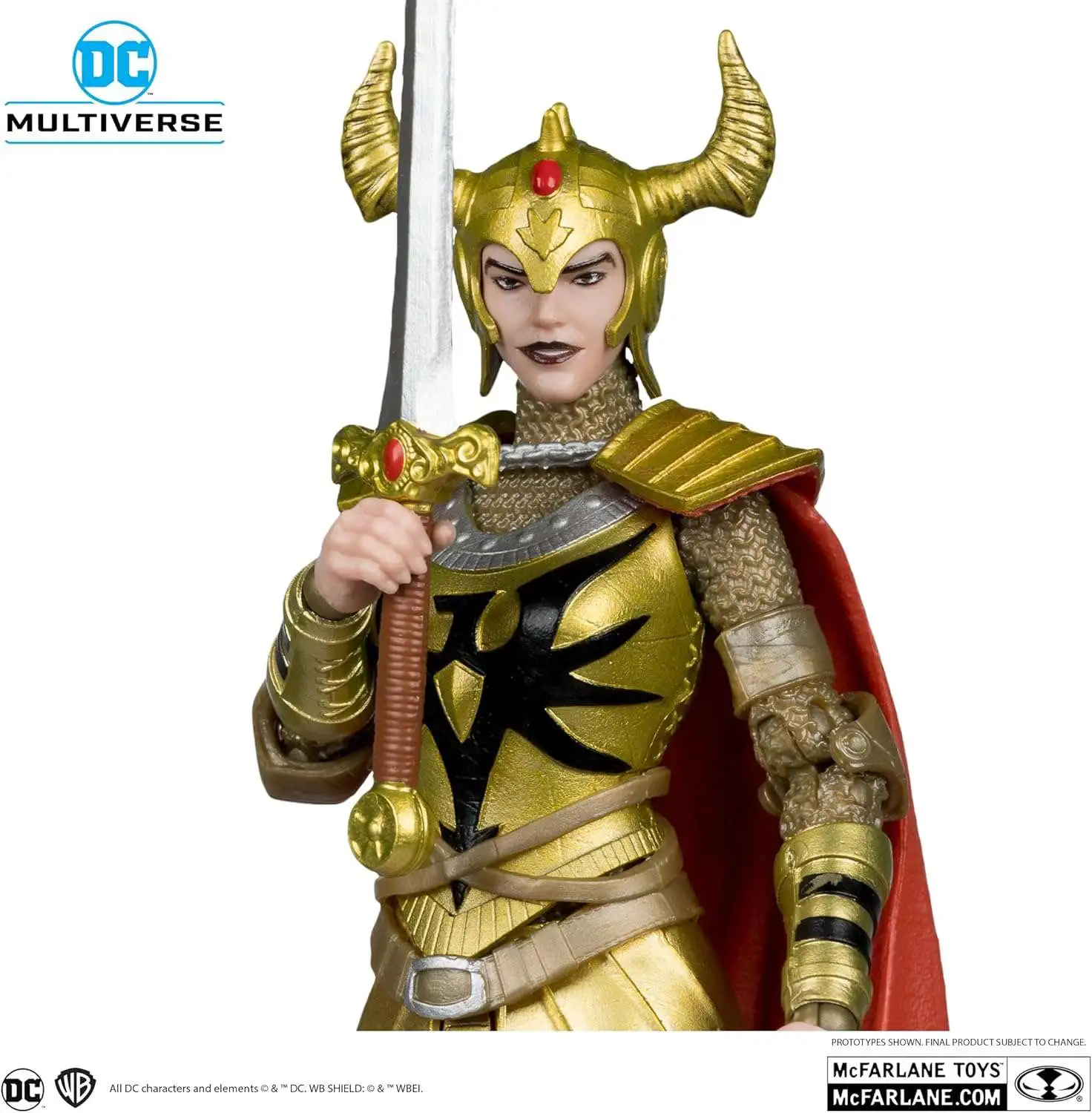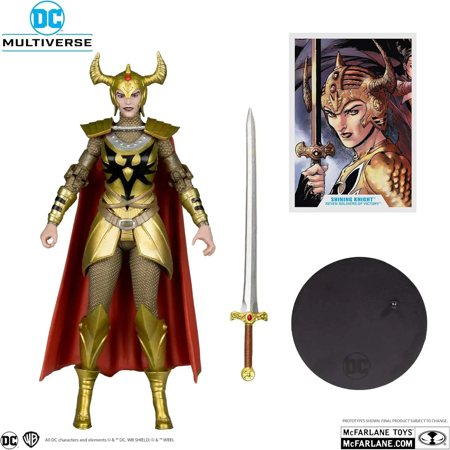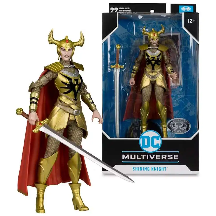 - Detailed 7" action figure of the gender-fluid, immortal Shining Knight from DC's Multiverse, featuring multiple accessories and historic armor details.