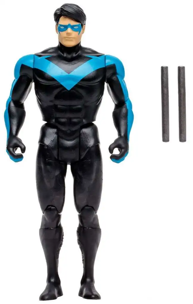 Nightwing is featured in his classic suit and includes two Escrima sticks.