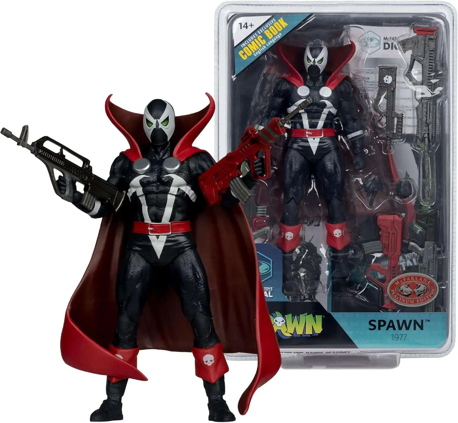 McFarlane Toys Page Punchers Spawn Action Figure & Comic Book [1977 Red & Black, Red Platinum Edition, Digital Collectible]