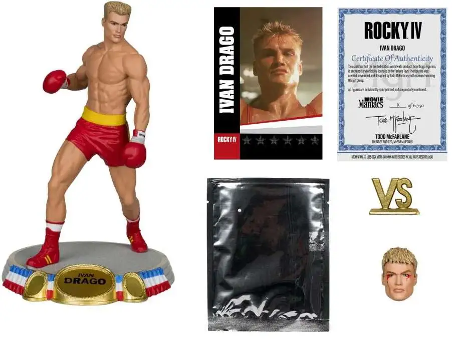 - 6-inch highly detailed poseable figure of Ivan Drago from Rocky IV, capturing his intense presence.