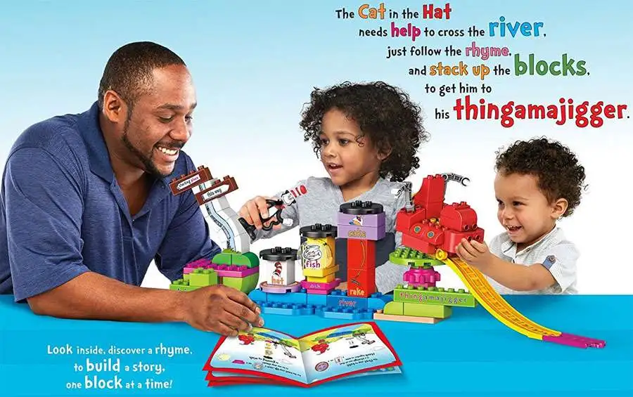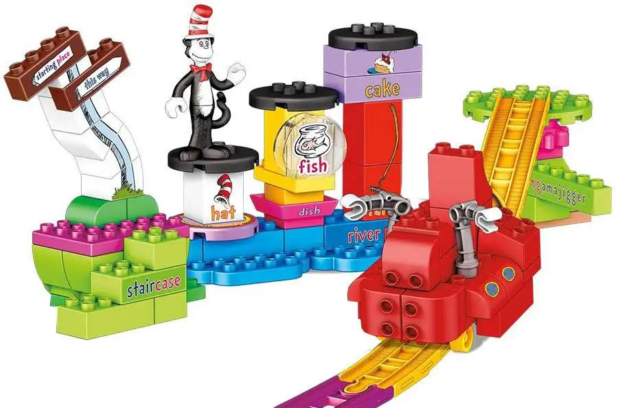 The Cat in the Hat needs to go on his way, help him zoom down a ramp and away! When you build the river crossing, little Dr. Seuss fans can use blocks to bring one of the most popular childrens books of all time to life! Follow the rhymes and stack up the blocks to build a river crossing inspired by The Cat in the Hat. Then, take The Cat in the Hat from step to step to reach his Thingamajigger, and roll him down the ramp towards a new adventure!