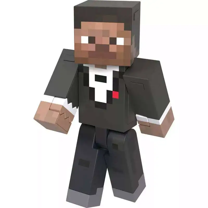- Tuxedo Steve is posable with detailing that is authentic to the unique, pixelated world of Minecraft, and the unique packaging resembles a gold ingot!