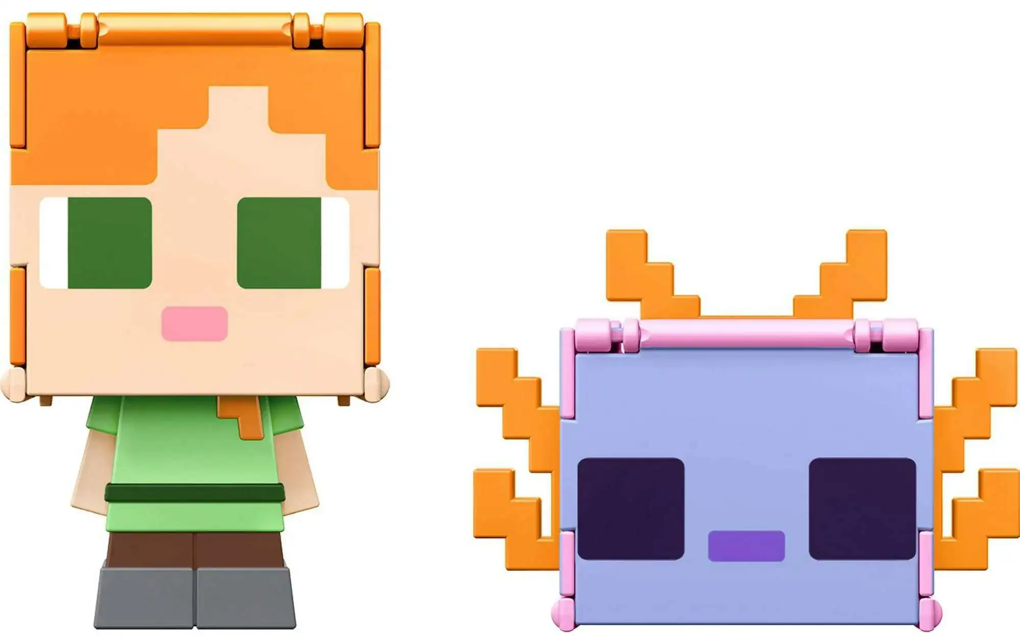 - Minecraft Flippin' Figs Alex and Axolotl figures can each easily transform back and forth into 2 different figures over and over again!