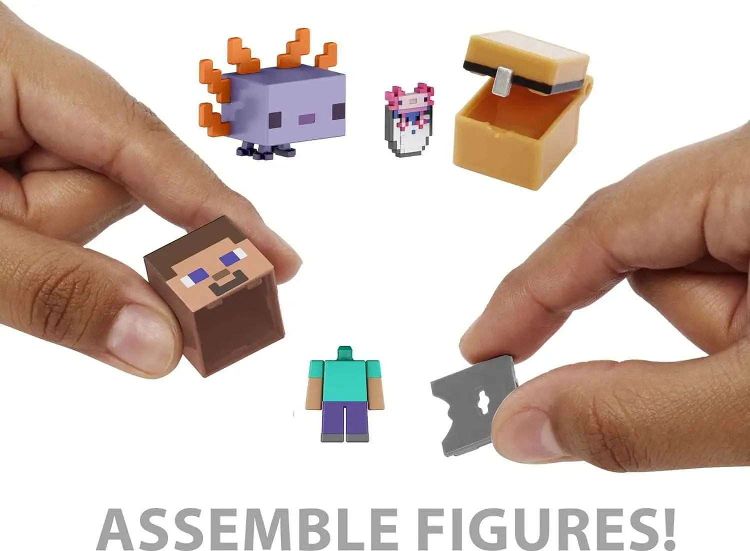 - The Minecraft Mob Head Minis Figure packs - like the Axolotl Adventures set - are designed to tell a complete story in one box with 2 specially selected character figures and accessories