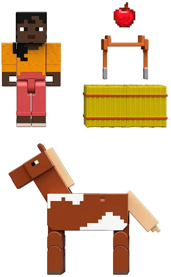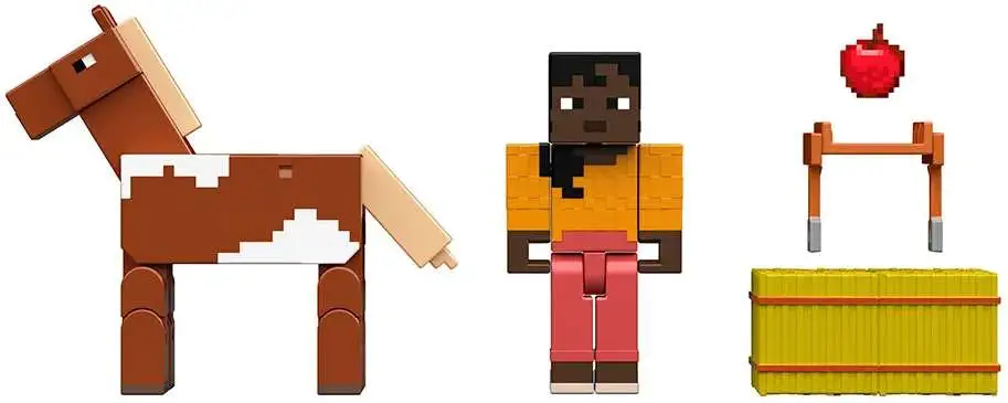- Includes two 3.25-inch figures: Stable Master Makena and her Horse, inspired by Minecraft's pixelated style.