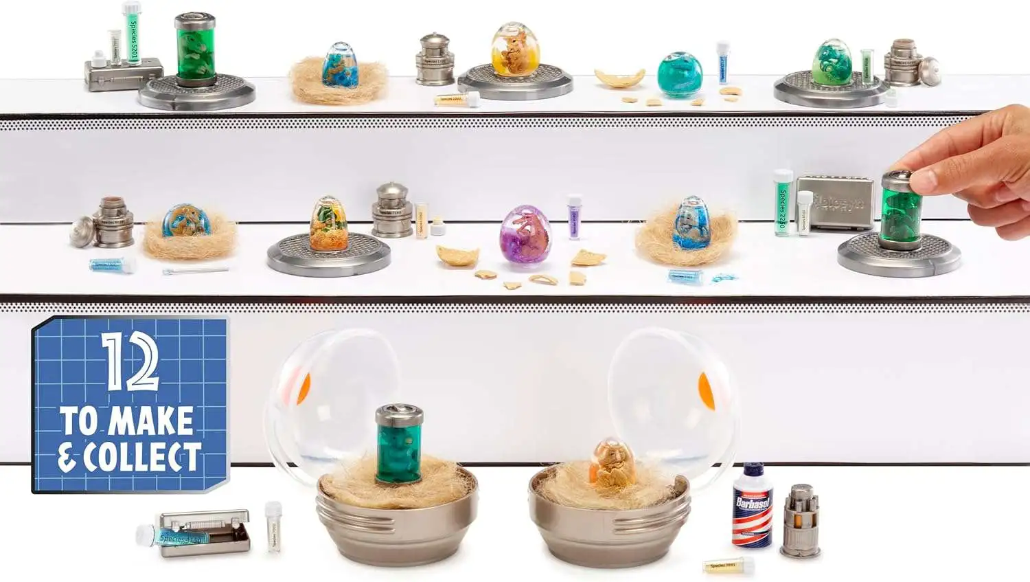 Compare the contents of your package with the collector's guide to see which mini dinosaur you have. Follow the instruction guide to inject your egg or cylinder with DNA powder and liquid, bringing your baby dinosaur to life! Once the DNA is injected, shake your egg or hybrid cylinder and wait for the materials to separate, revealing your dinosaur! Your ball transforms into an incubator display for your mini dinosaur. Whether you prefer it open or closed, your display is the perfect showcase for your collection.