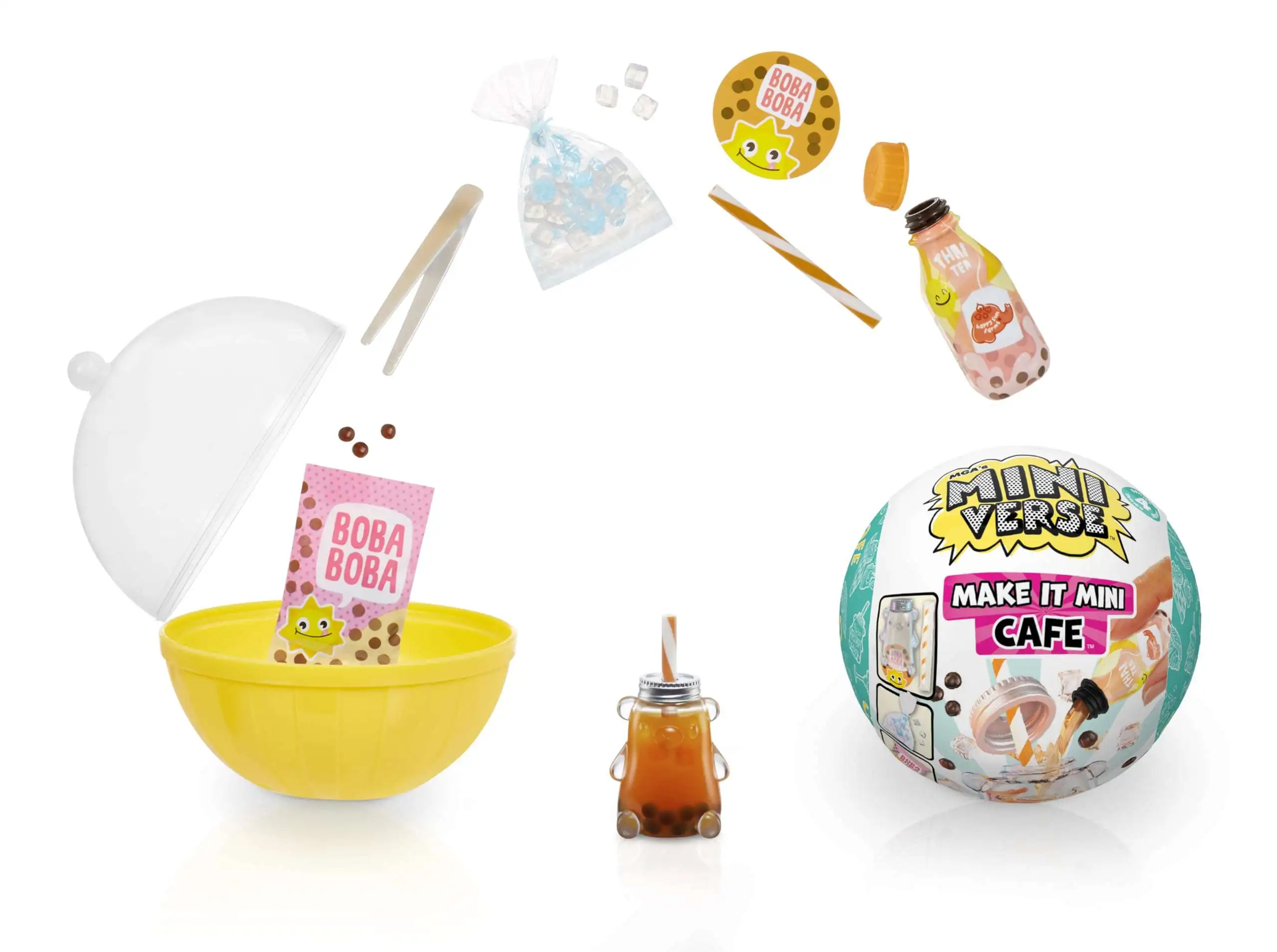 Each ball comes with realistic mini "ingredients" and accessories to make your own mini replicas of your favorite snacks and desserts! Each package is a SURPRISE, so you won't know which mini you have until you unbox it! Compare the contents of your package with the included collector's guide, to see which mini you have. Follow the "recipe" card on the back to make your mini.
