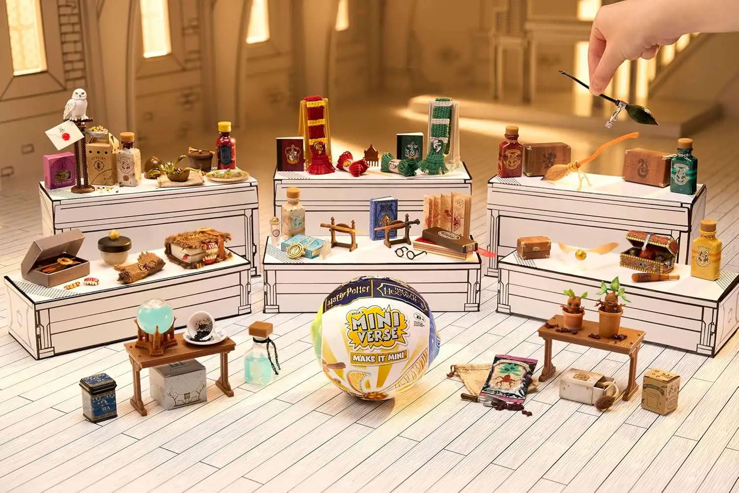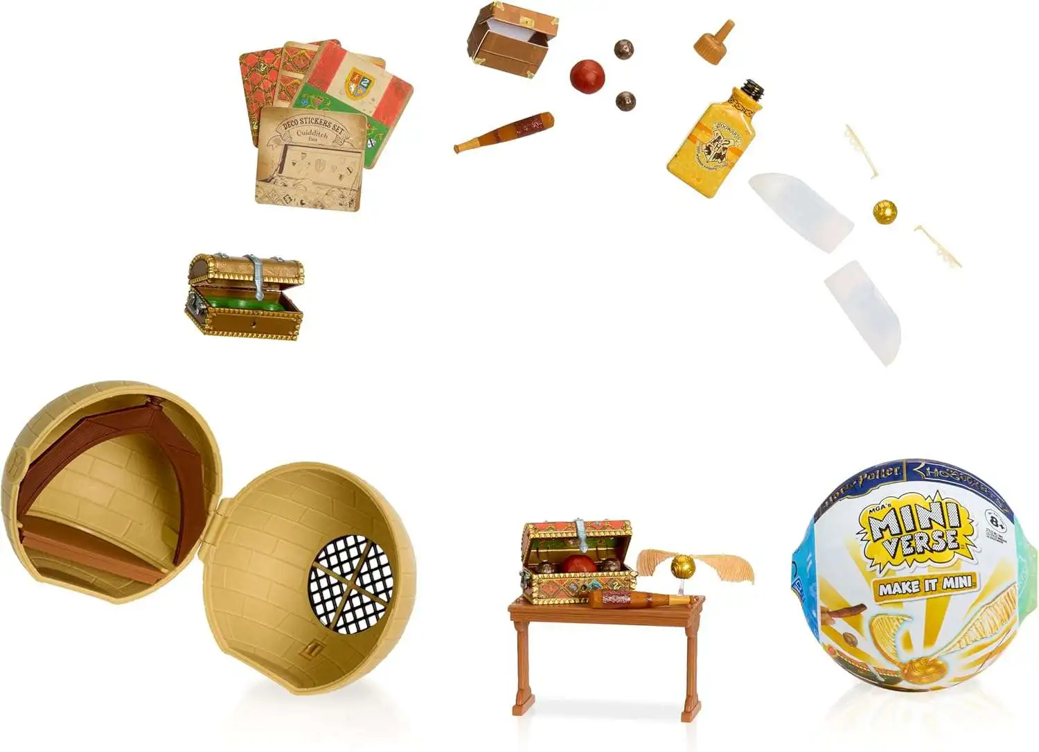 - UNBOX IT: Inside each ball, are realistic mini supplies and accessories to craft your favorite replica items from the Harry Potter film series! From a Quidditch Set to the Nimbus 2000 to a Gryffindor Scarf. Each package is a SURPRISE so you won't know which Make It Mini you have until you unbox it! There are 12 to Collect in this Series.
