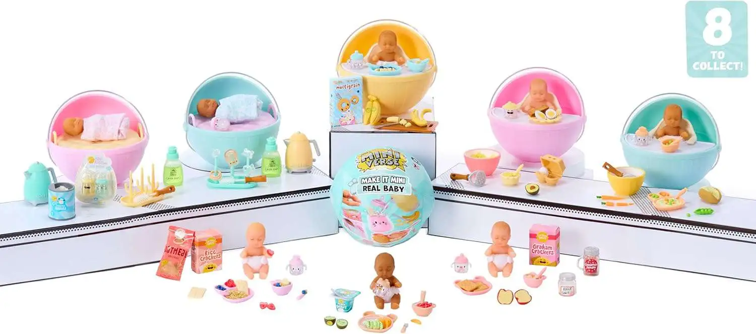 Each surprise capsule is packed with a super-realistic mini baby plus realistic baby food "ingredients" and feeding accessories. There are 8 unique babies, each with 8 unique mini food recipes to collect across the seriesso get ready for a bundle of surprises!