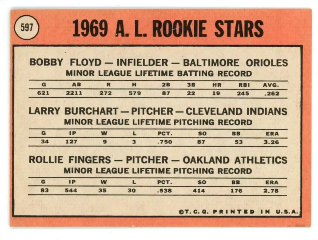 MLB 1969 Topps Bob Floyd / Larry Burchart / Rollie Fingers #597 [Excellent] has successfully been added to your cart!