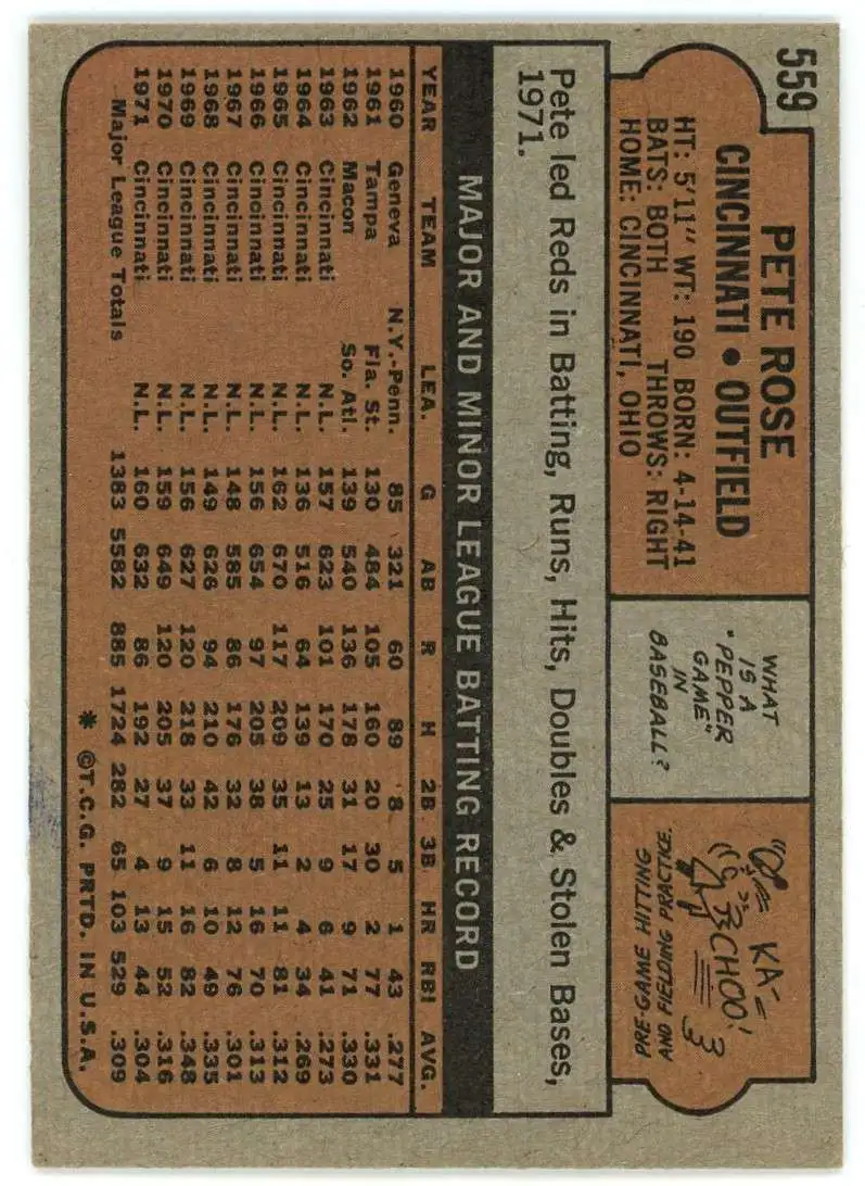 MLB 1972 Topps Pete Rose #559 [VG-EX] has successfully been added to your cart!