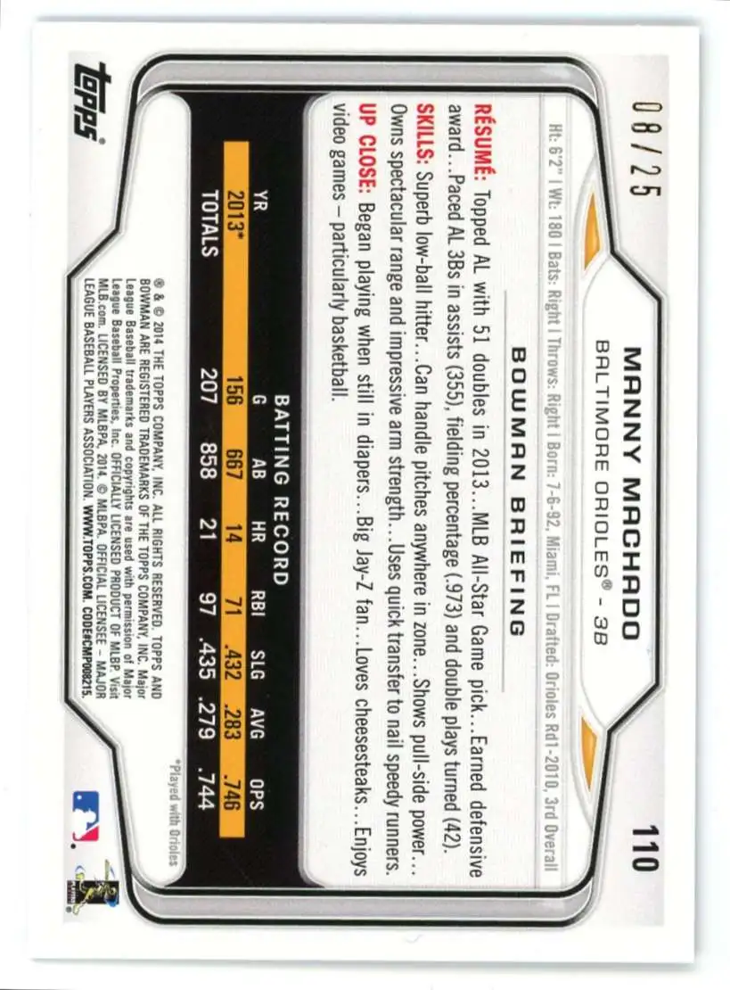 MLB Topps 2014 Bowman Baseball Black 08/25 Manny Machado #110