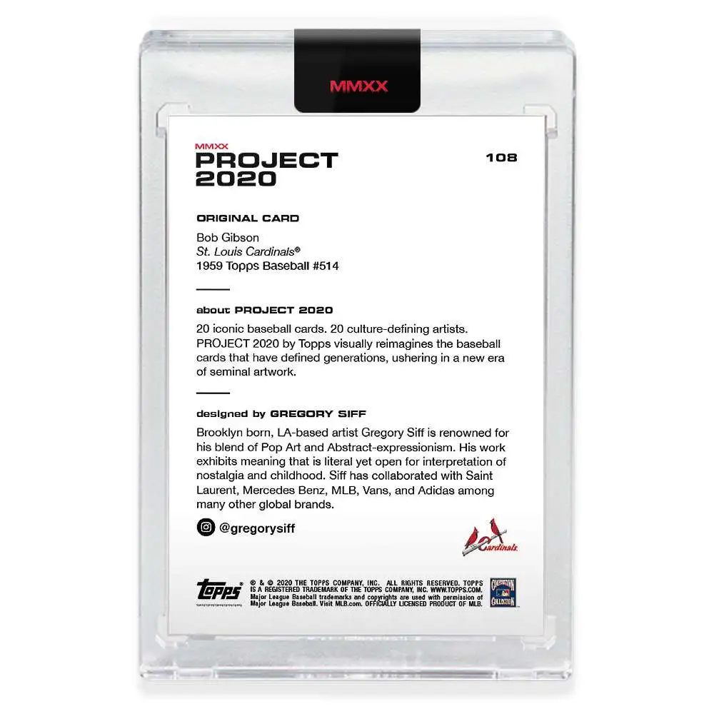 MLB Topps Project 2020 Baseball 1959 Bob Gibson Trading Card [#108, by Gregory Siff] has successfully been added to your cart!