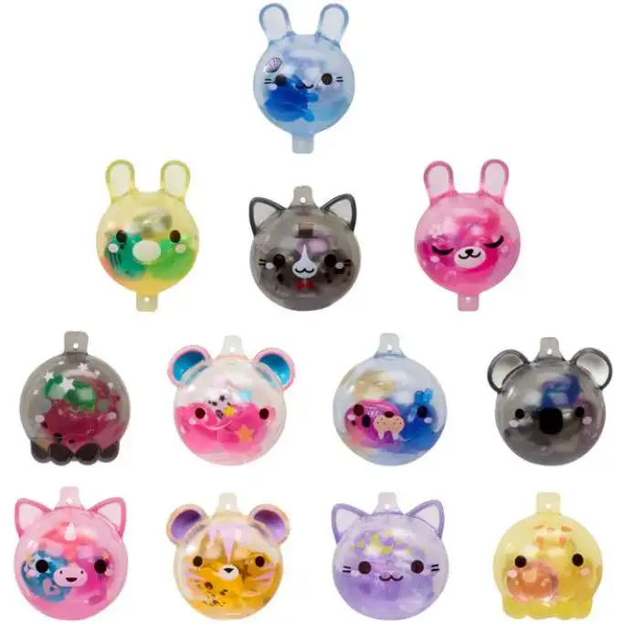 - Contains 36 mystery packs featuring unique Moj Moj Bubbles characters, each filled with tiny floating figures for a delightful squishy experience.
