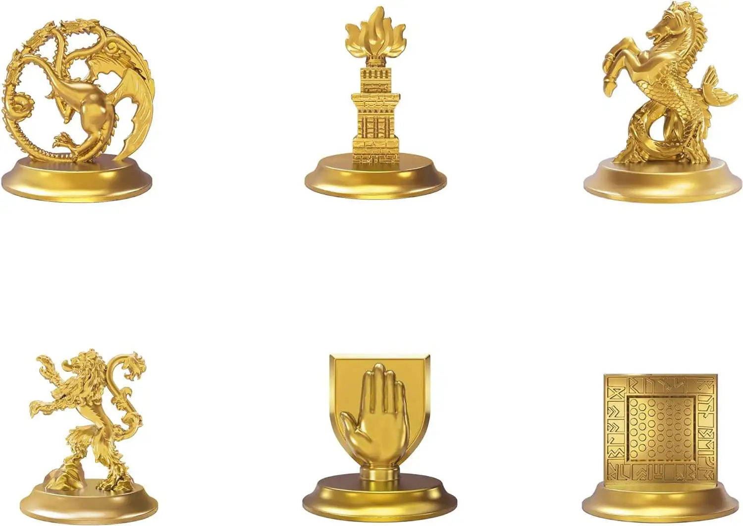 - Includes 6 golden game tokens: House Targaryen, House Hightower, House Velaryon, House Lannister, House Strong, and House Royce. Who will you pledge loyalty to?