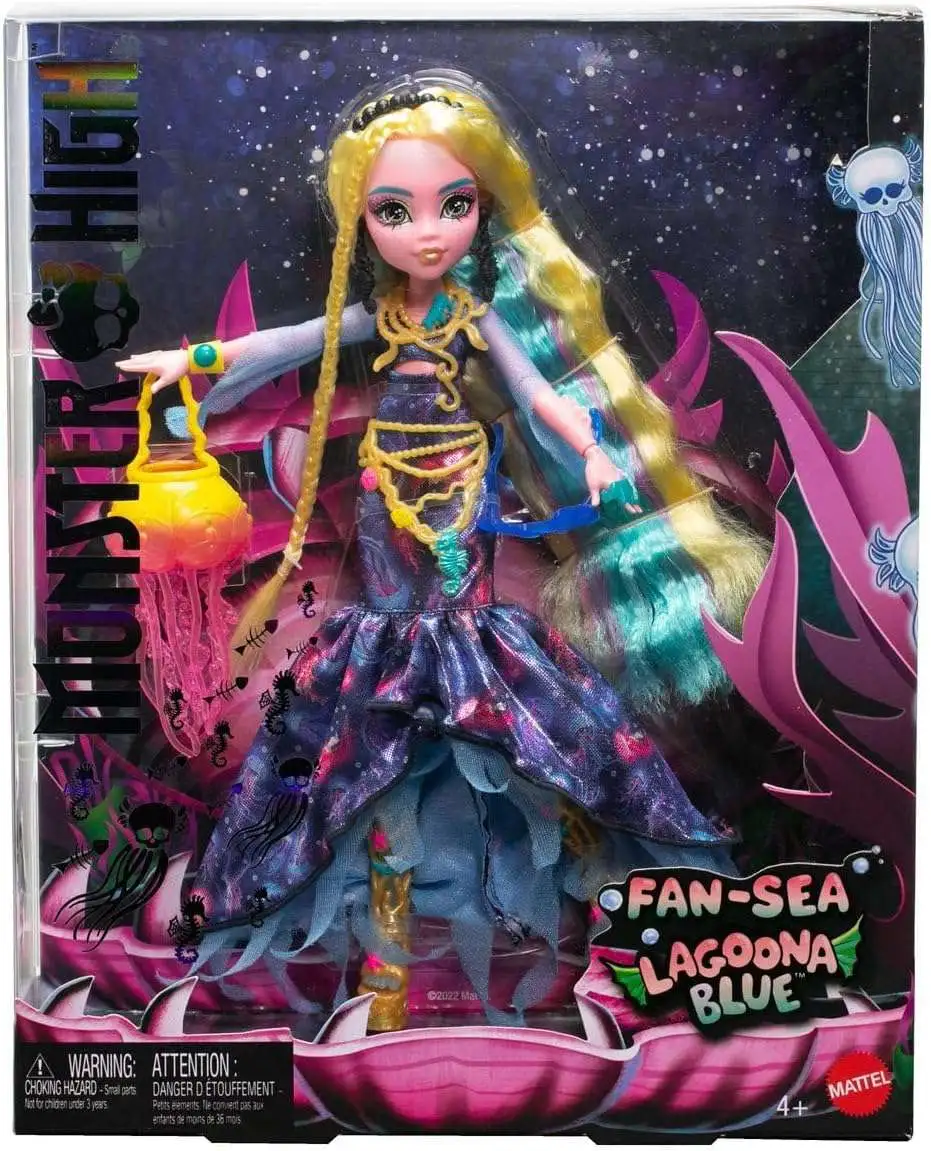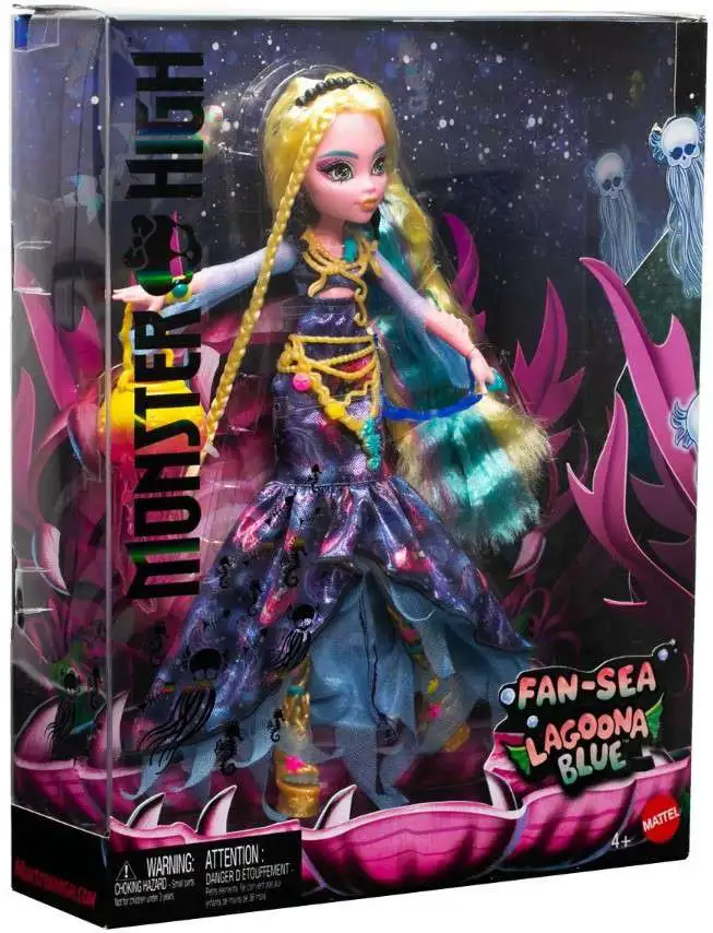 This extraordinary Monster High Fan-Sea Lagoona Blue - Exclusive doll is ready to haunt the deep, dark depths of the sea - or your collection - in her spookily stylish dress. Screamium details give her a high fashion lurk with a classic Monster High twist. From her rippling hair to her scary-chic accessories, Lagoona Blue is the most gore-geously glam monster in all the Seven Seas! She's fully articulated but cannot stand alone. Doll stand included. Ages 4 and up.