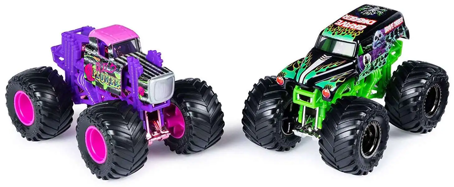 Monster Jam Double Down Showdown! Grave Digger & Wild Flower Diecast Car 2-Pack