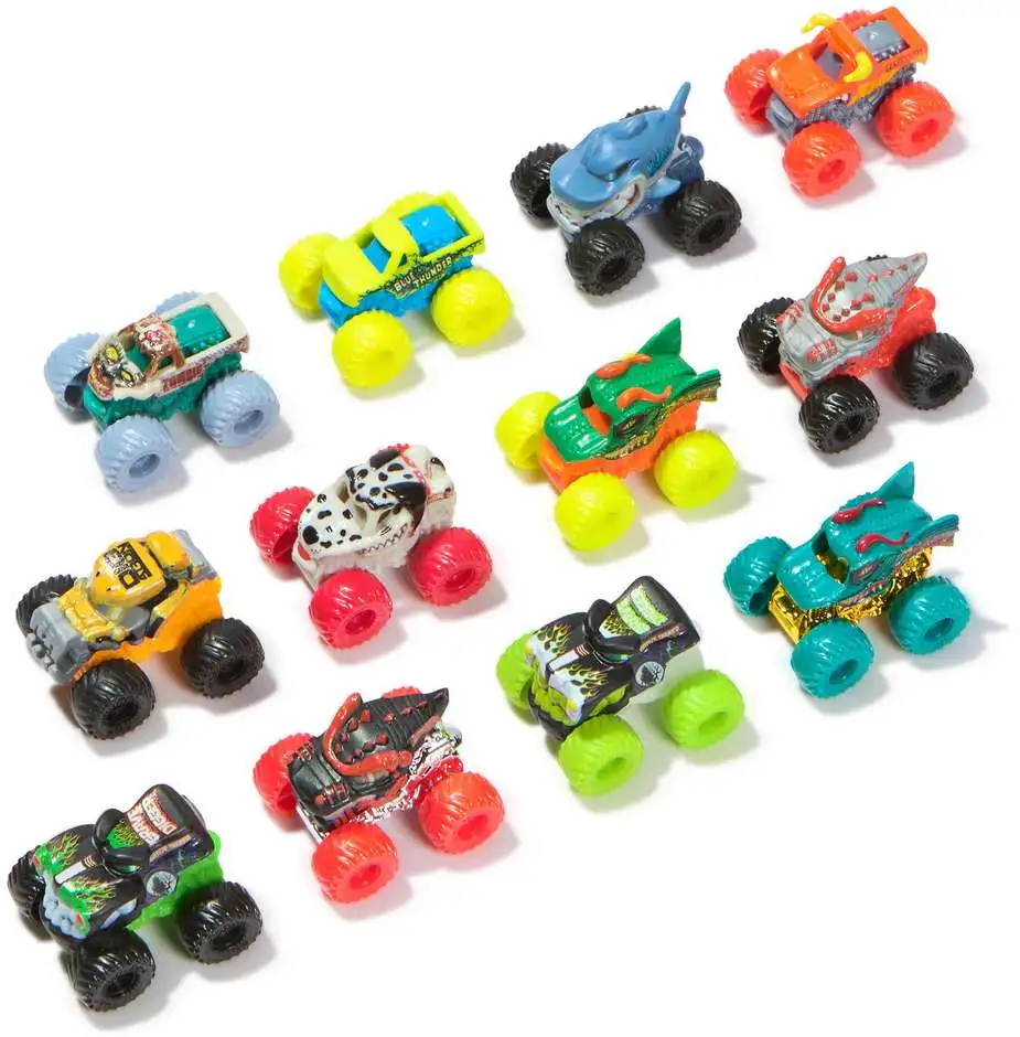 - Contains 24 mystery packs, each with a 1:87 scale die-cast mini Monster Jam truck.