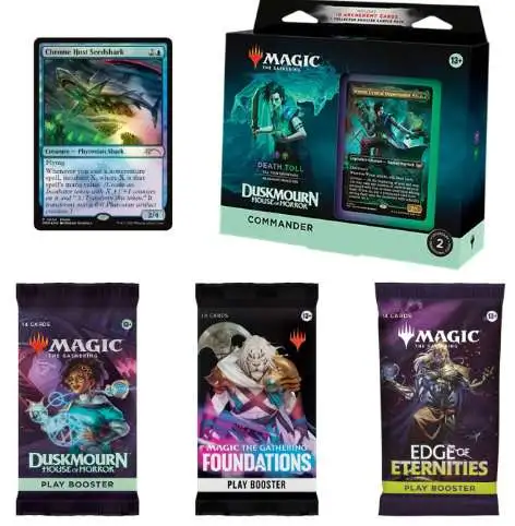 - Includes a themed Duskmourn: House of Horror Commander deck and multiple booster packs for expanded gameplay.