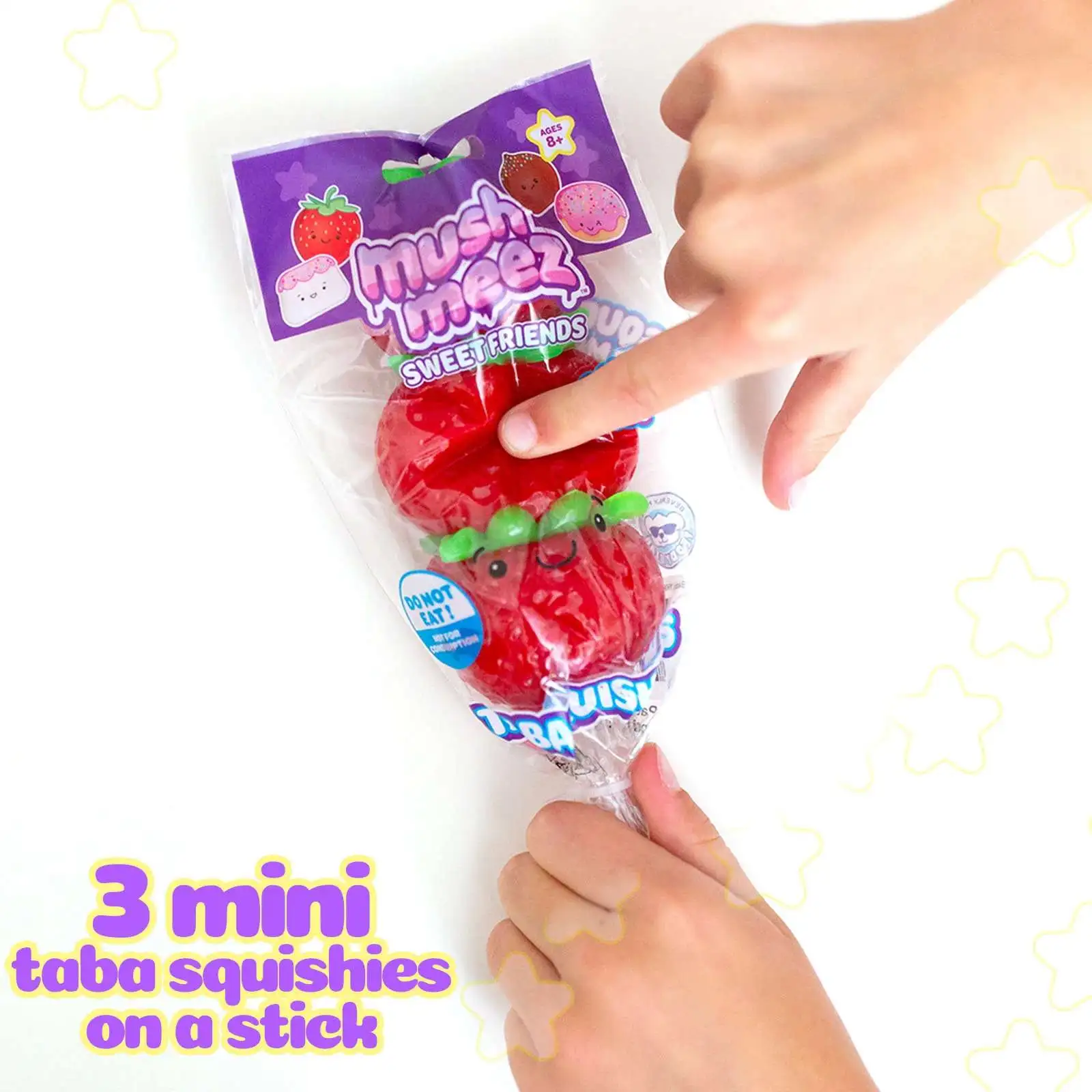 - Peel, Play, and Stretch! Take the Taba squishies off the stick for individual play! Stretch, throw, and squish each strawberry layer together for a gooey, hands-on sensory experience that never ends.