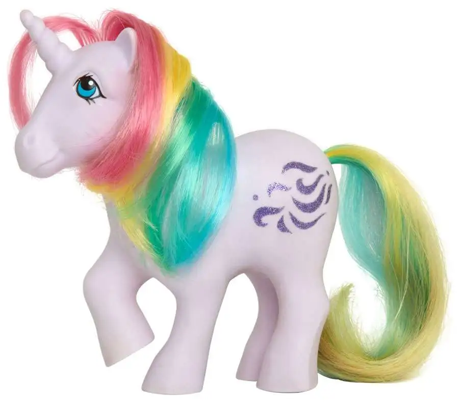 Girls have loved Hasbro's My Little Pony since the 1980s, so to mark the 35th anniversary of the brand, we've recreated the original six Rainbow Ponies - Sunlight, Starshine, Windy, Parasol, Skydancer and Moonstone! With long, shiny rainbow-colored hair that you can style, they look and feel just like you remember and are the perfect gift for kids or adult collectors. Each pony includes a comb, brush and ribbon and has a different sweet scent! You can collect all six!