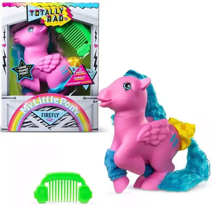 - Totally Rad Firefly: Firefly just got a totally rad glow-up! This iconic pink Pegasus now rocks crimped neon blue hair, a bright yellow scrunchie, and double lightning bolts cutie mark-bringing bold retro flair to her classic charm.