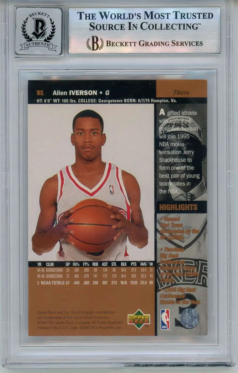 NBA 1996-97 Upper Deck Allen Iverson #91 [Auto, Damaged Slab] has successfully been added to your cart!