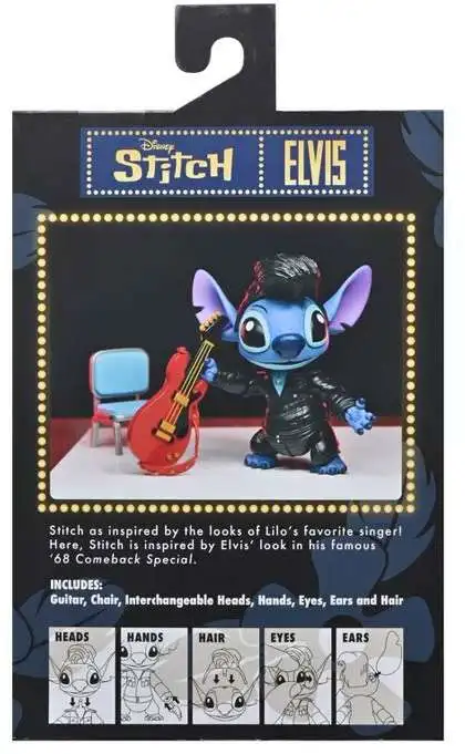 - Dressed up in a black leather outfit just like Elvis wore, this Disney Stitch articulated action figure stands over 3 inches tall and is ready to put on a show you'll never forget!