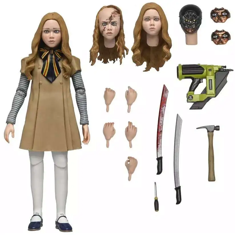 This 7-inch scale M3GAN articulated action figure carefully matches her on-screen appearance. Accessories include interchangeable heads and hands, battle-damaged head, robot head with swappable faceplates, screwdriver, nail gun, hammer, paper cutter blade. She will be an excellent addition to any family!