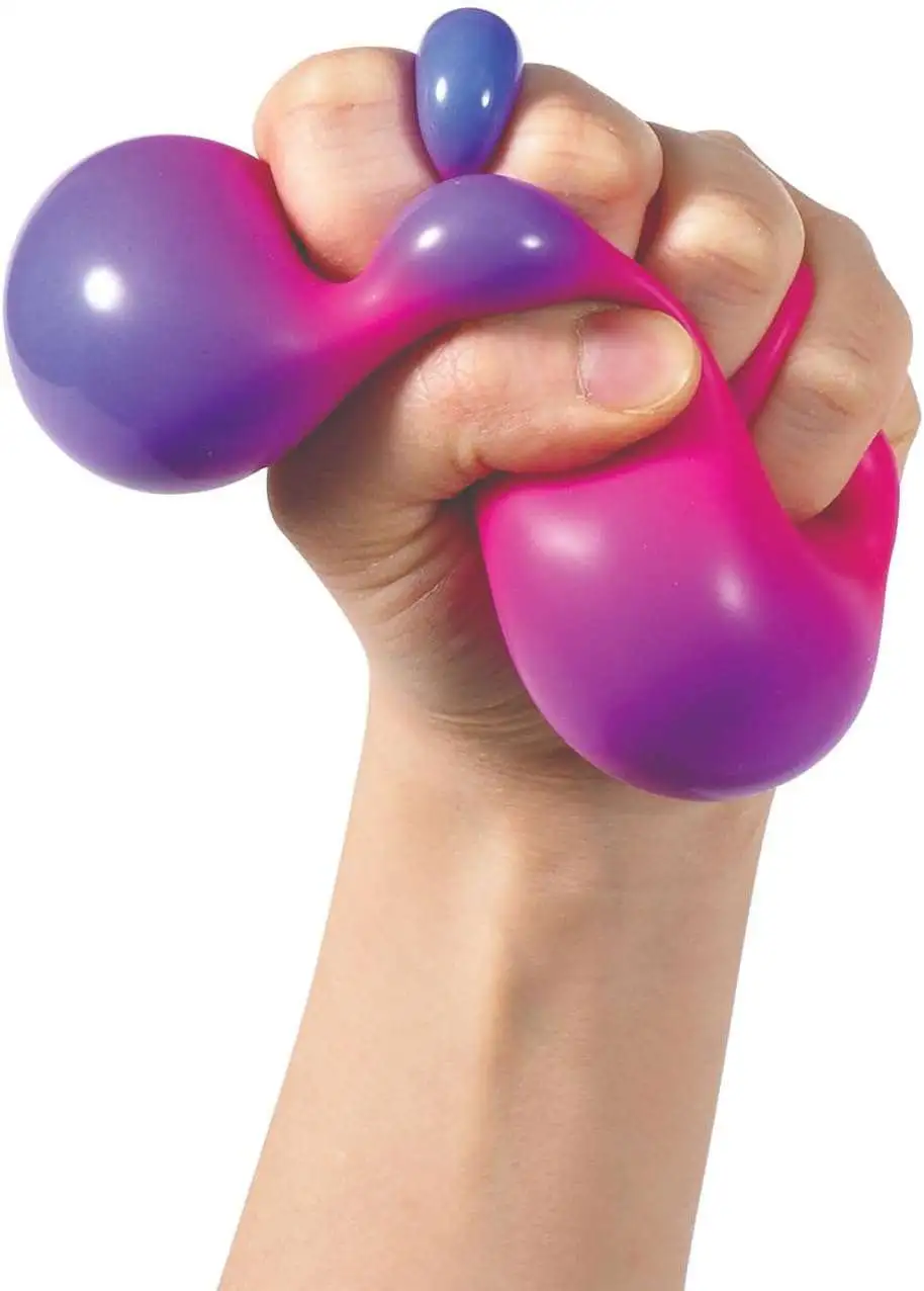- Color-changing stress ball that shifts hues when squeezed, then returns to original state.