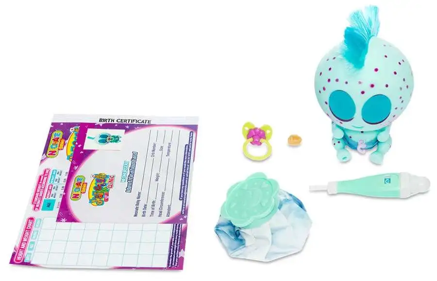Includes: Nerlie Baby, Thermometer, Pacifier, Diaper, Water Bag, Poo and Documents.