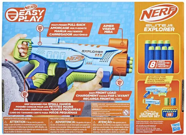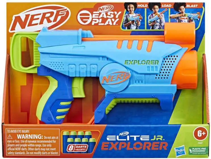 - Nerf dart blasting is an awesome way to get kids moving, with fun indoor and outdoor games that encourage physical and social play. The Explorer blaster includes 8 Nerf Elite foam darts