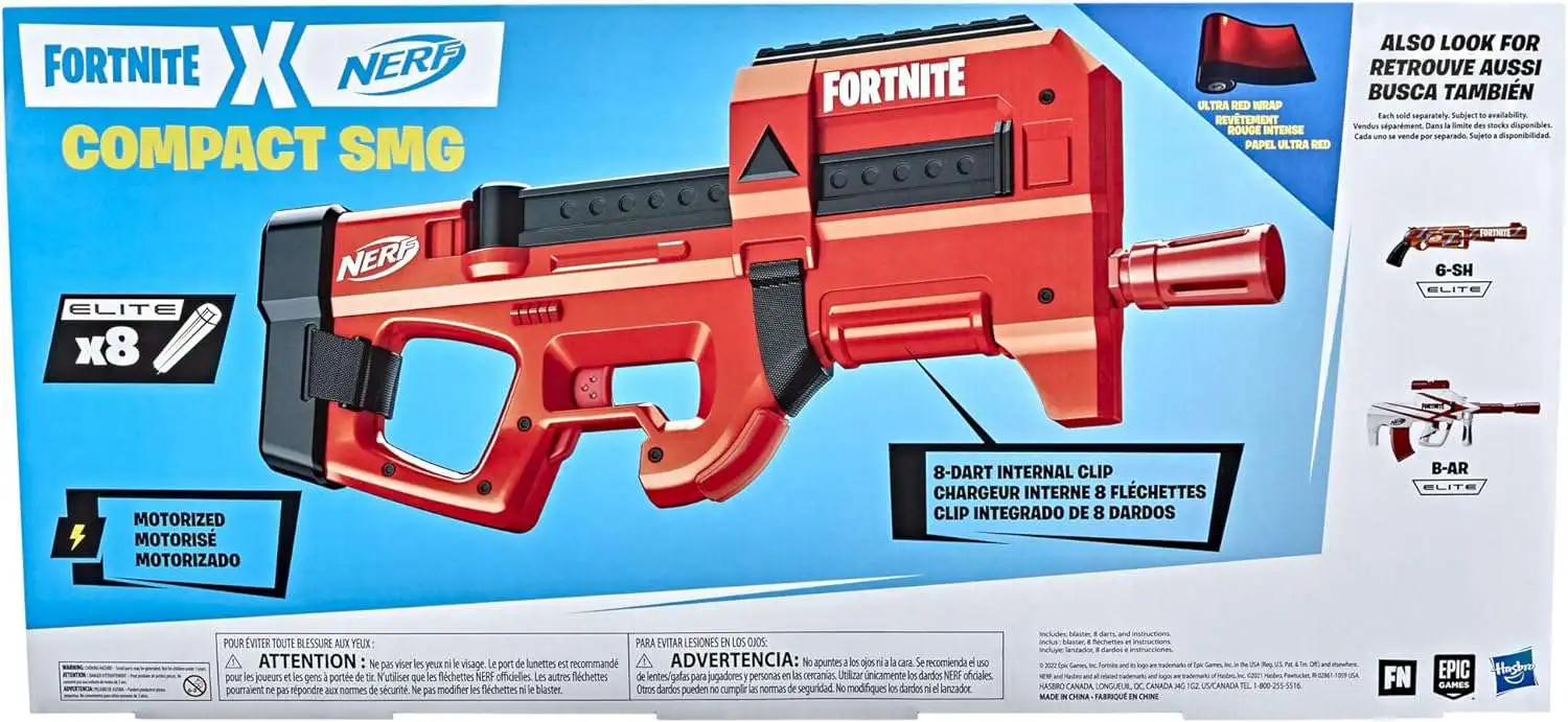 - This Nerf Fortnite Compact SMG blaster is inspired by the automatic equipment used in Fortnite and comes in the Ultra Red Wrap from the popular video game