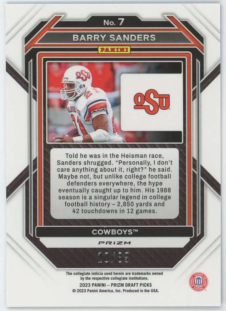 NFL 2023 Panini Prizm Draft Picks 20/89 Blue Wave Barry Sanders #7