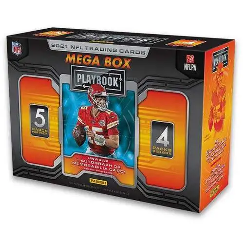 NFL Panini 2021 Playbook Football Trading Card MEGA Box [4 Packs, 1 Autograph OR Memorabilia Card, Orange Parallels!] has successfully been added to your cart!