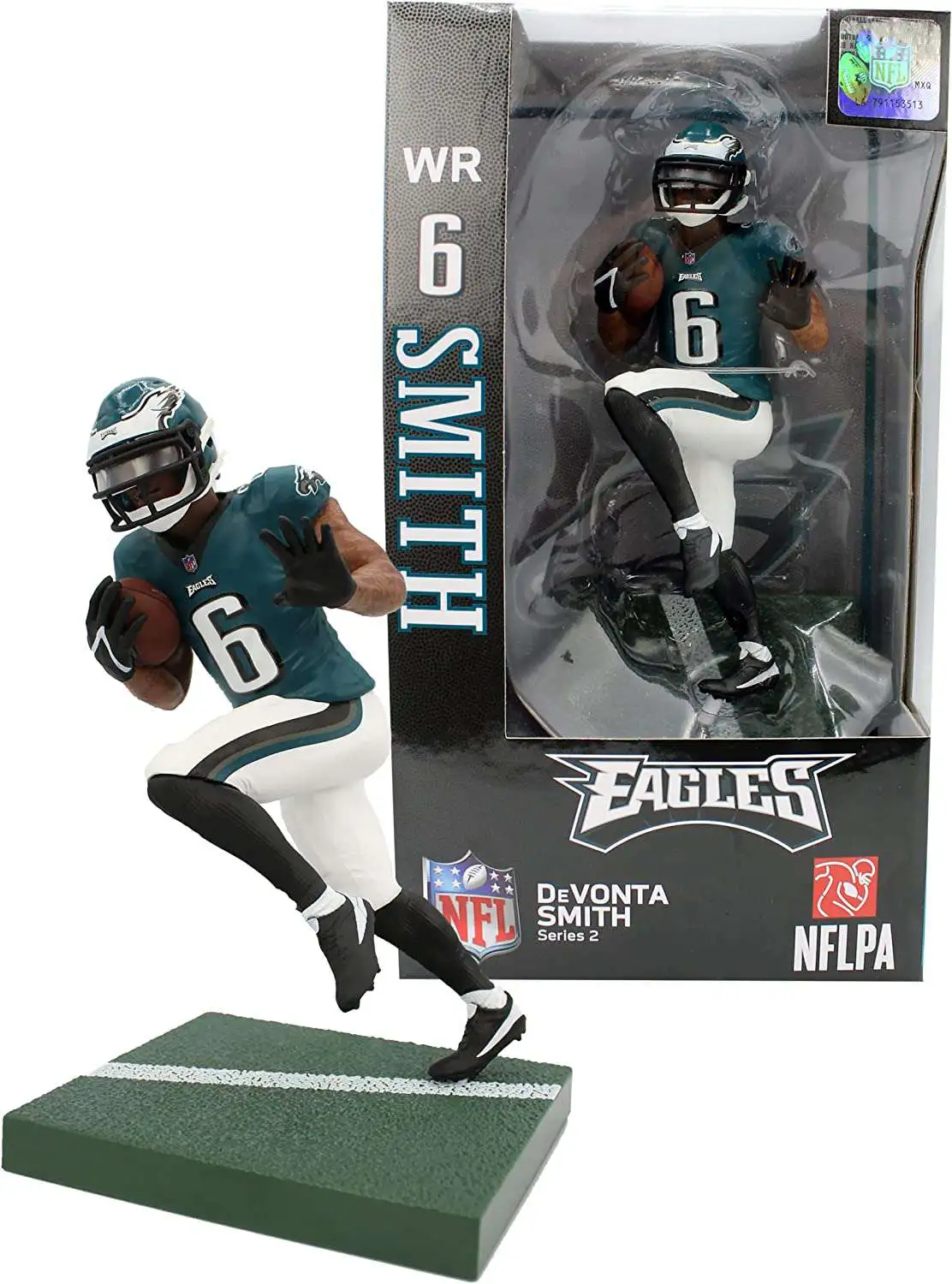 - Authentic DeVonta Smith action figure in Philadelphia Eagles' green jersey, capturing your favorite wide receiver's look.